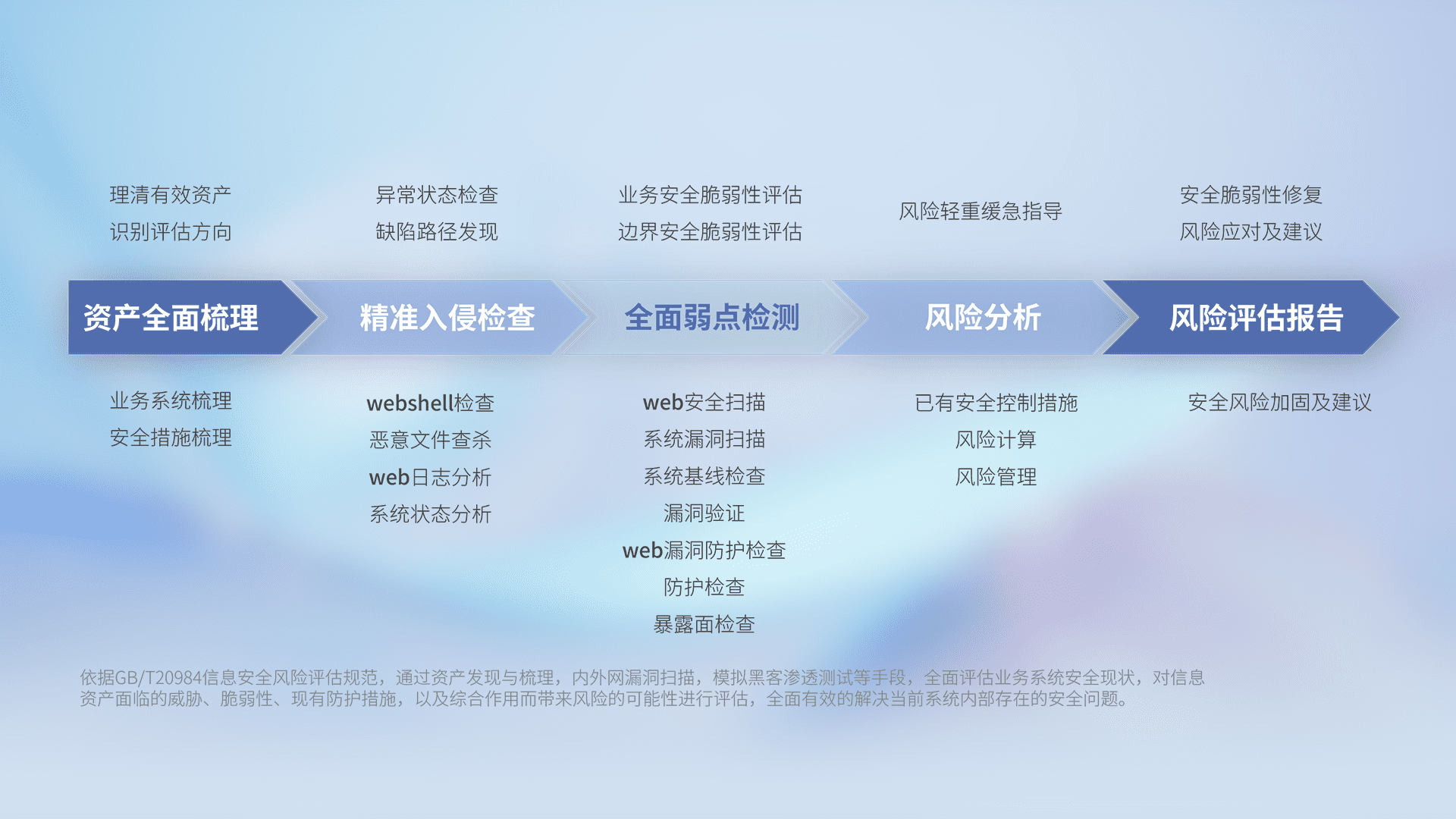 针对客户行业特性,,,,以专业的安全服务+多厂商联合解决方案提供专属的一站式安全管理服务,,帮助客户全面感知网络空间威胁,,,,基于识别、、、、检测、、、、分析、、防护、、、监测、、响应的服务理论模型,,,,从方案咨询、、集成交付、、、、评估验证、、优化加固、、、运维运营,,,致力于为客户提供完整的闭环管理式安全服务。。以实战经验为客户打造高抵御风险的安全体系,,帮助客户发现威胁、、、对抗威胁、、、、处置威胁,,不断积累安全对抗能力,,,持续保障数字化安全。。